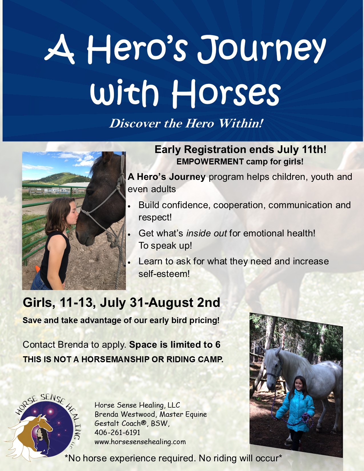 For more information and how to apply call 406-261-6191 or email brenda@horsesensehealing.com.