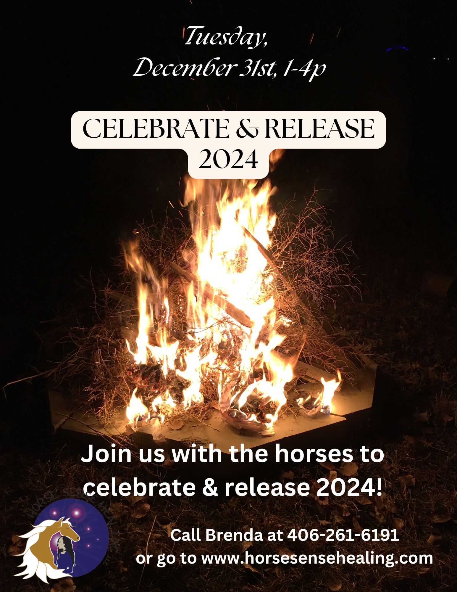 Join us New Year’s Eve Day from 1-4p with the healing horses to review, release and celebrate 2024! Enjoy refreshments, hot chocolate or cider.
